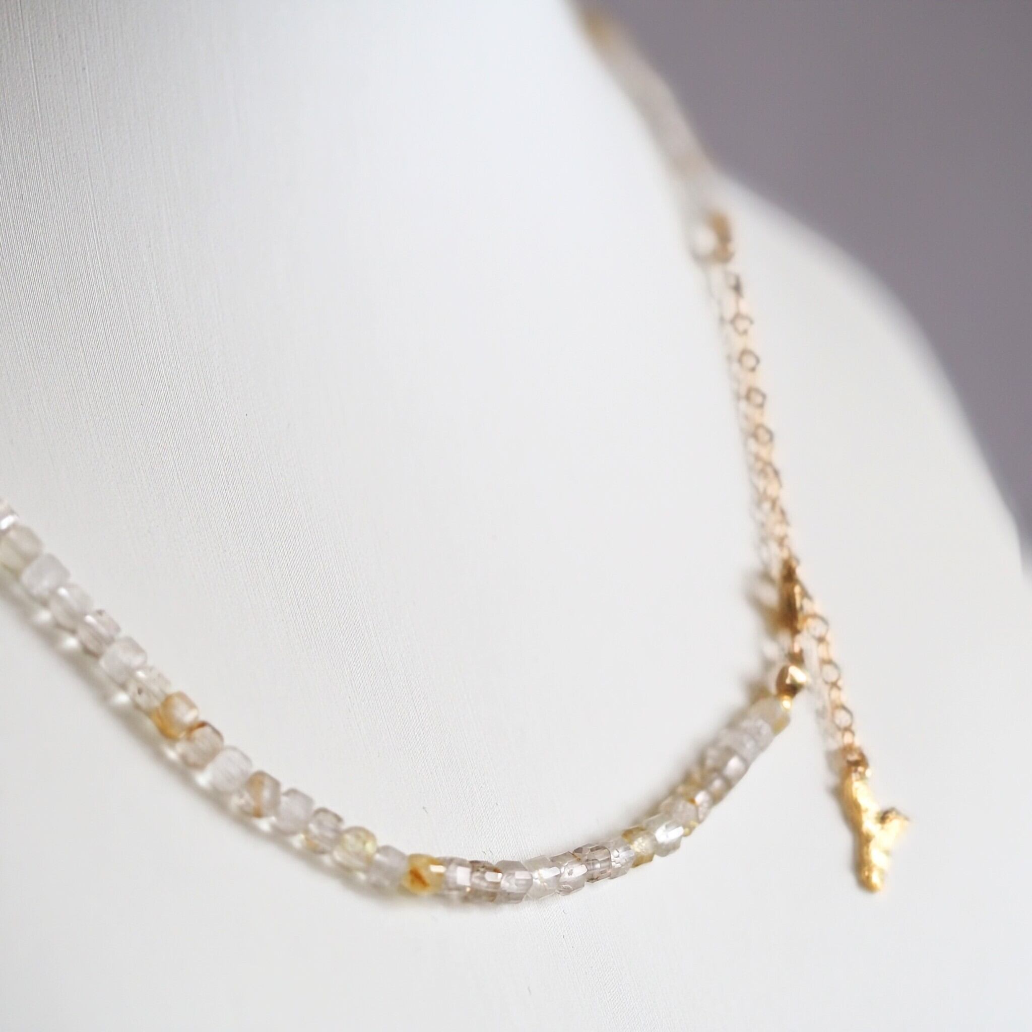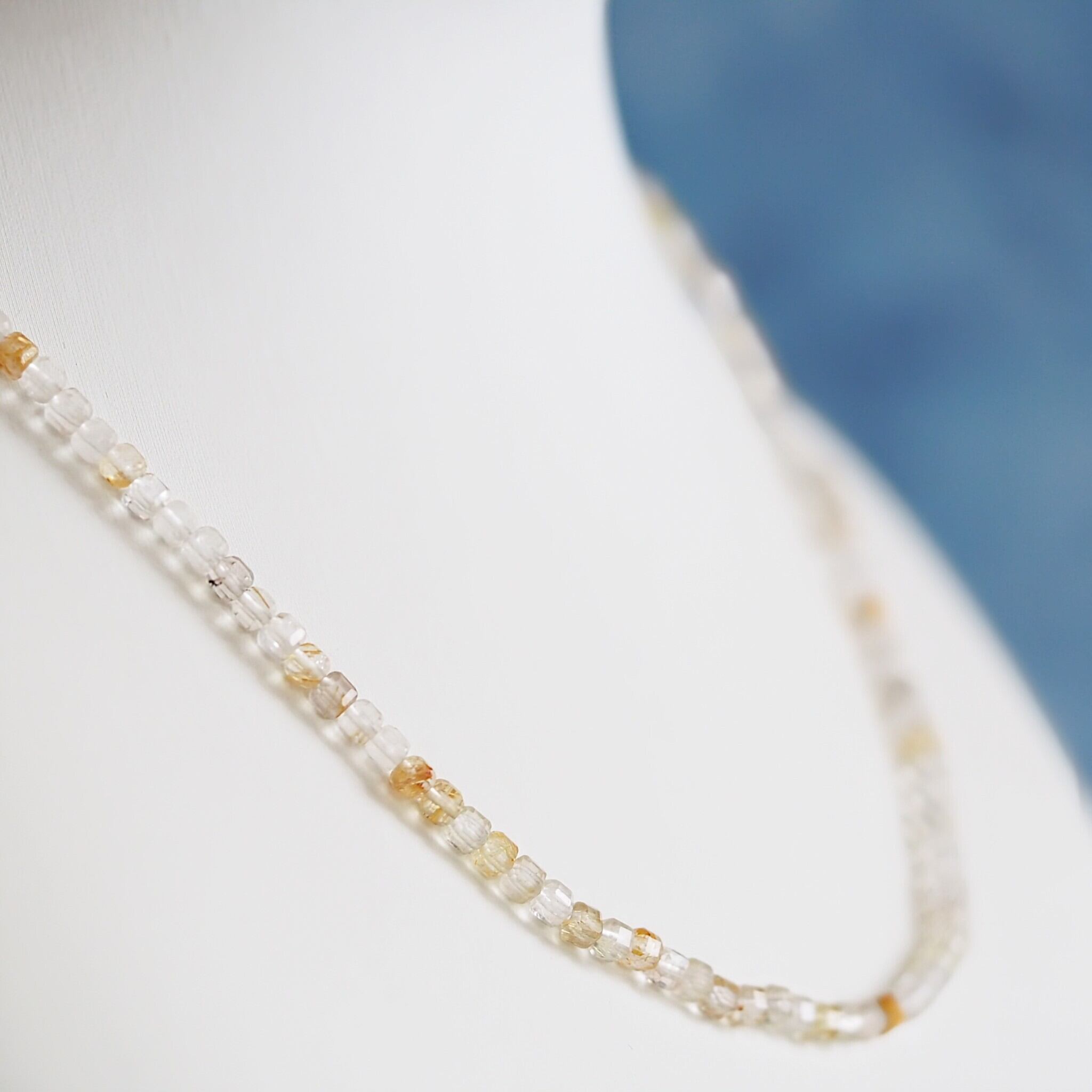 キューブカットのルチルクォーツを連ねたシンプルなネックレスです。