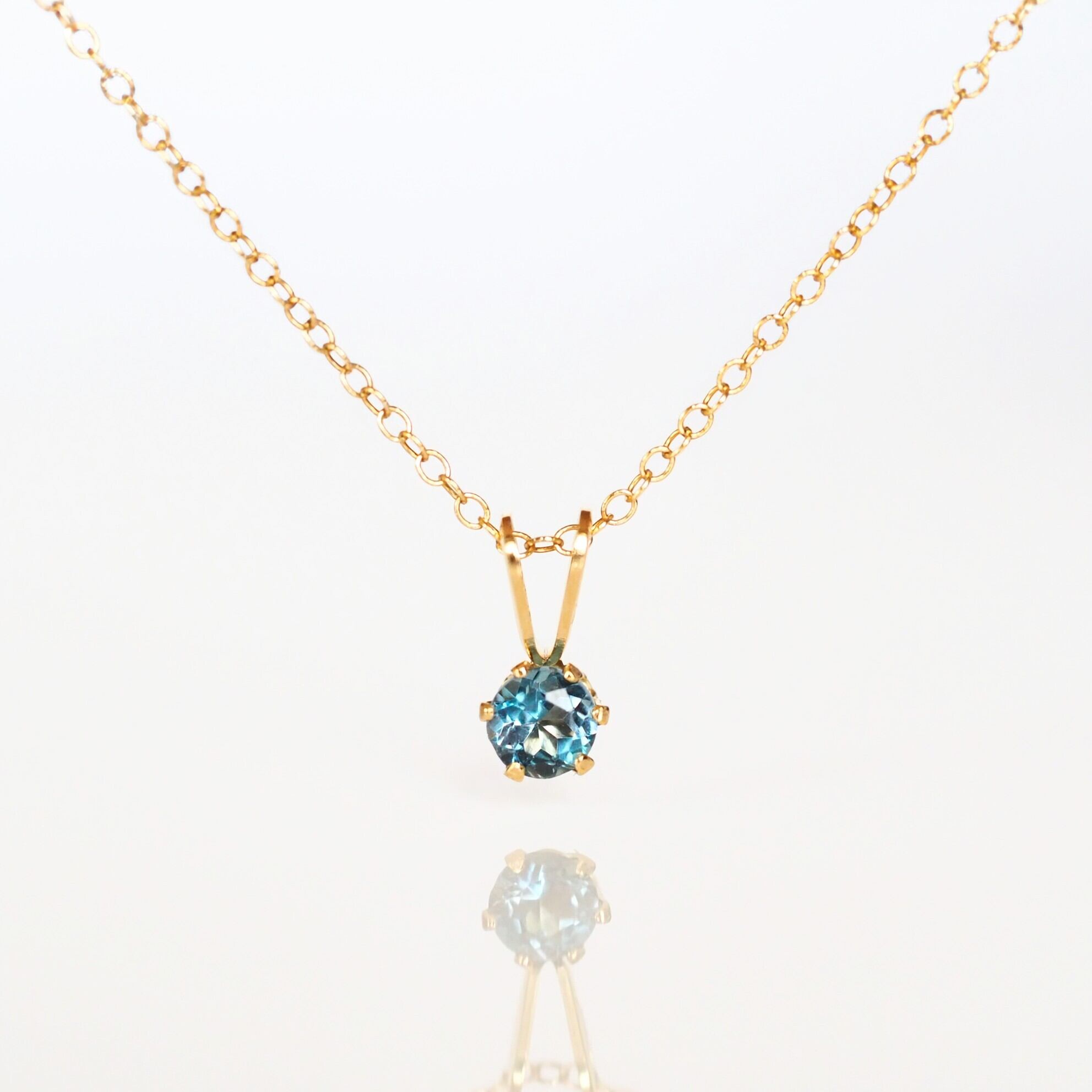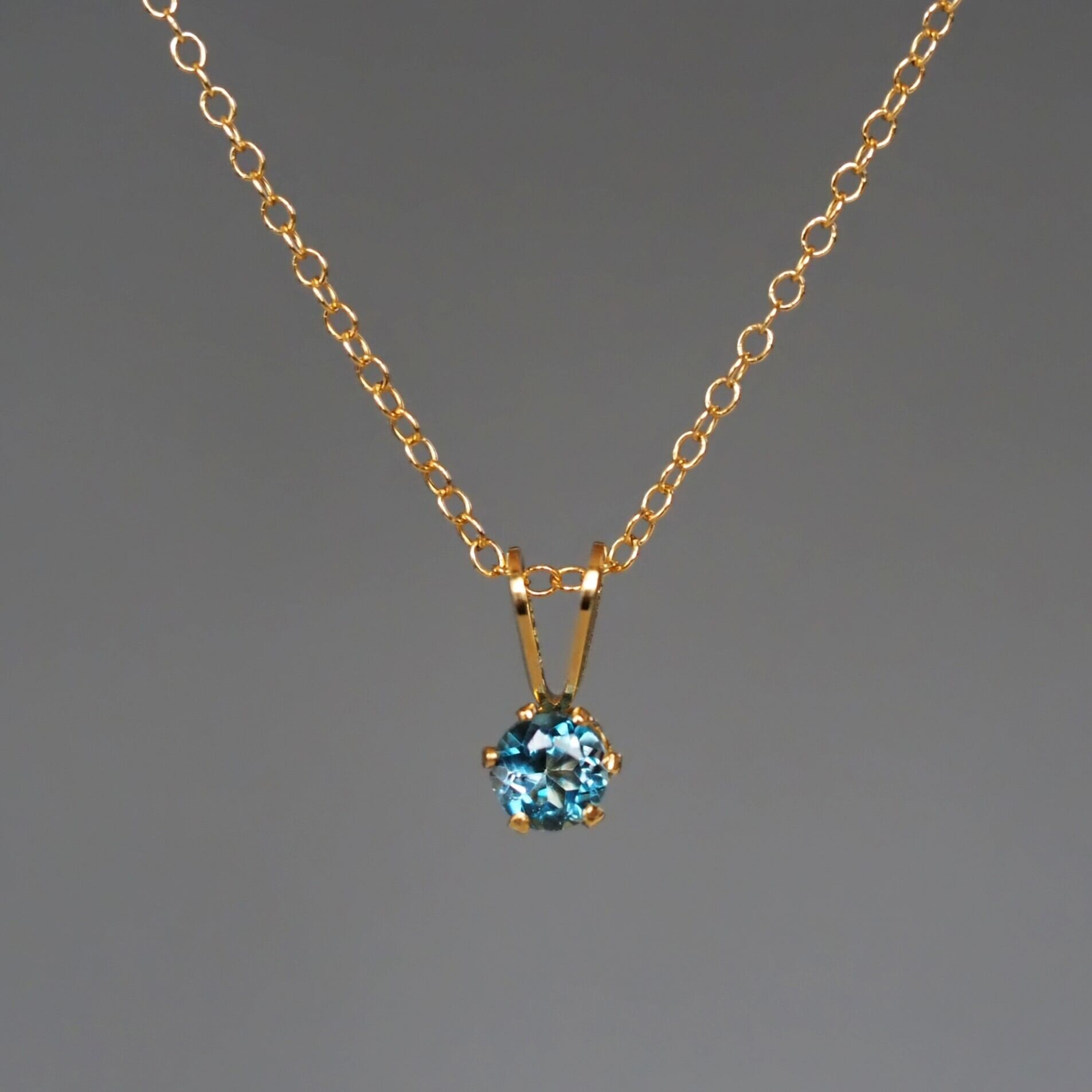 4.0㎜のひと粒ロンドンブルートパーズを立て爪にセットした、華奢なデザインのネックレスです。