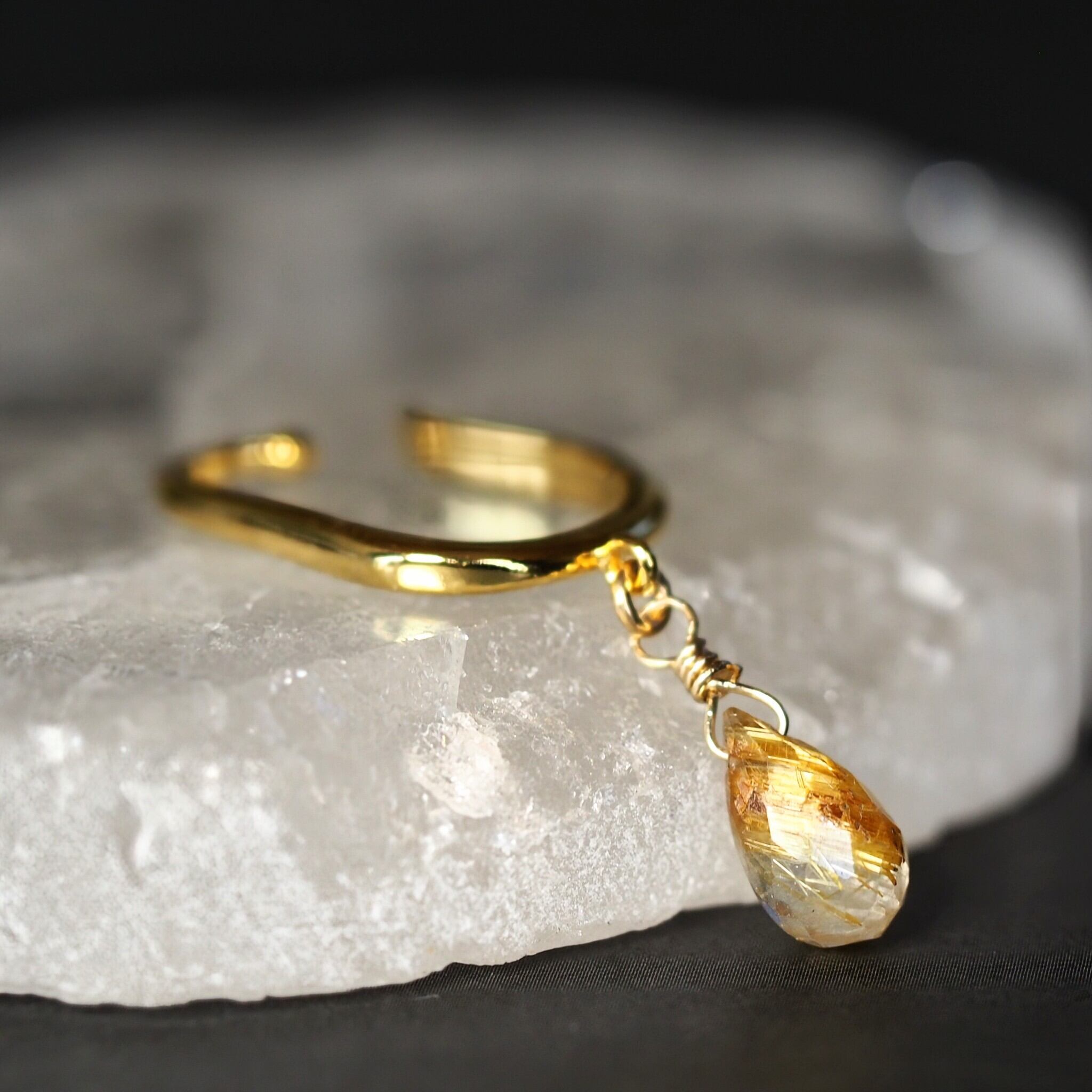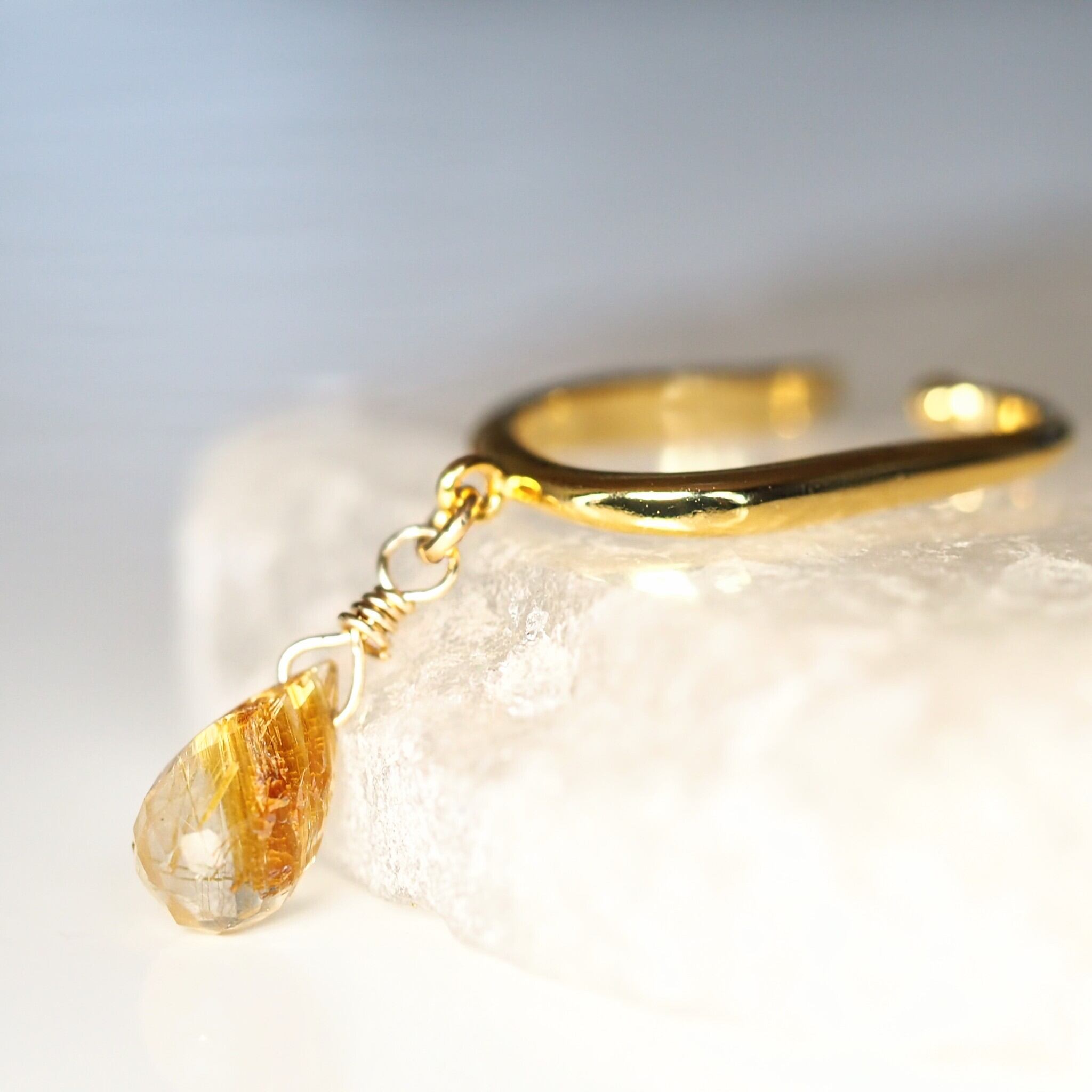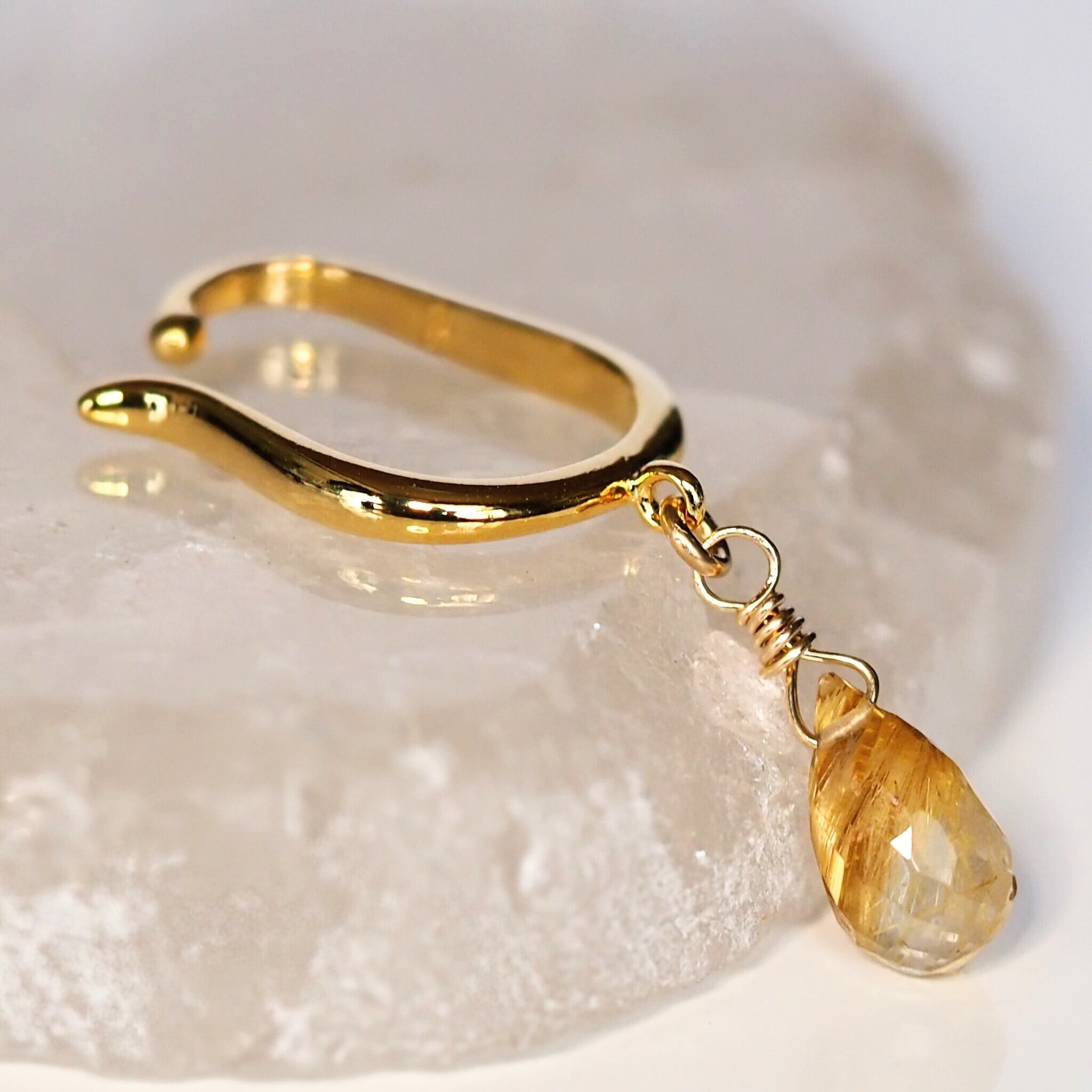 《ルチルクォーツのドロップイヤーカフ》