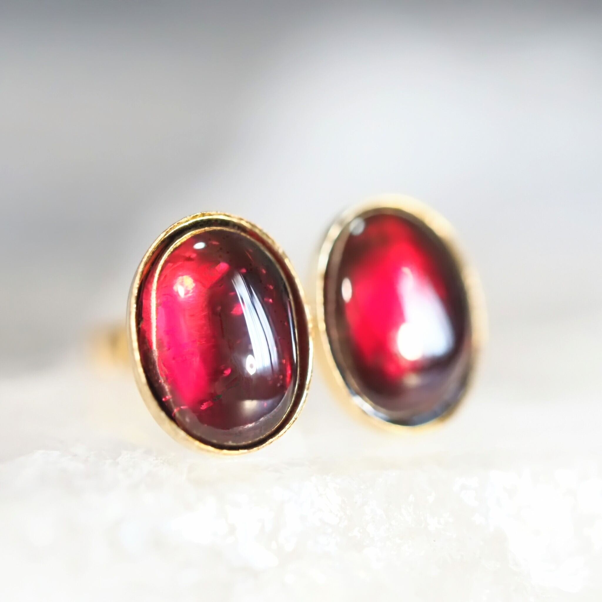 濃く鮮やかな赤が印象的なガーネットを、スタッドピアスに仕立てました。