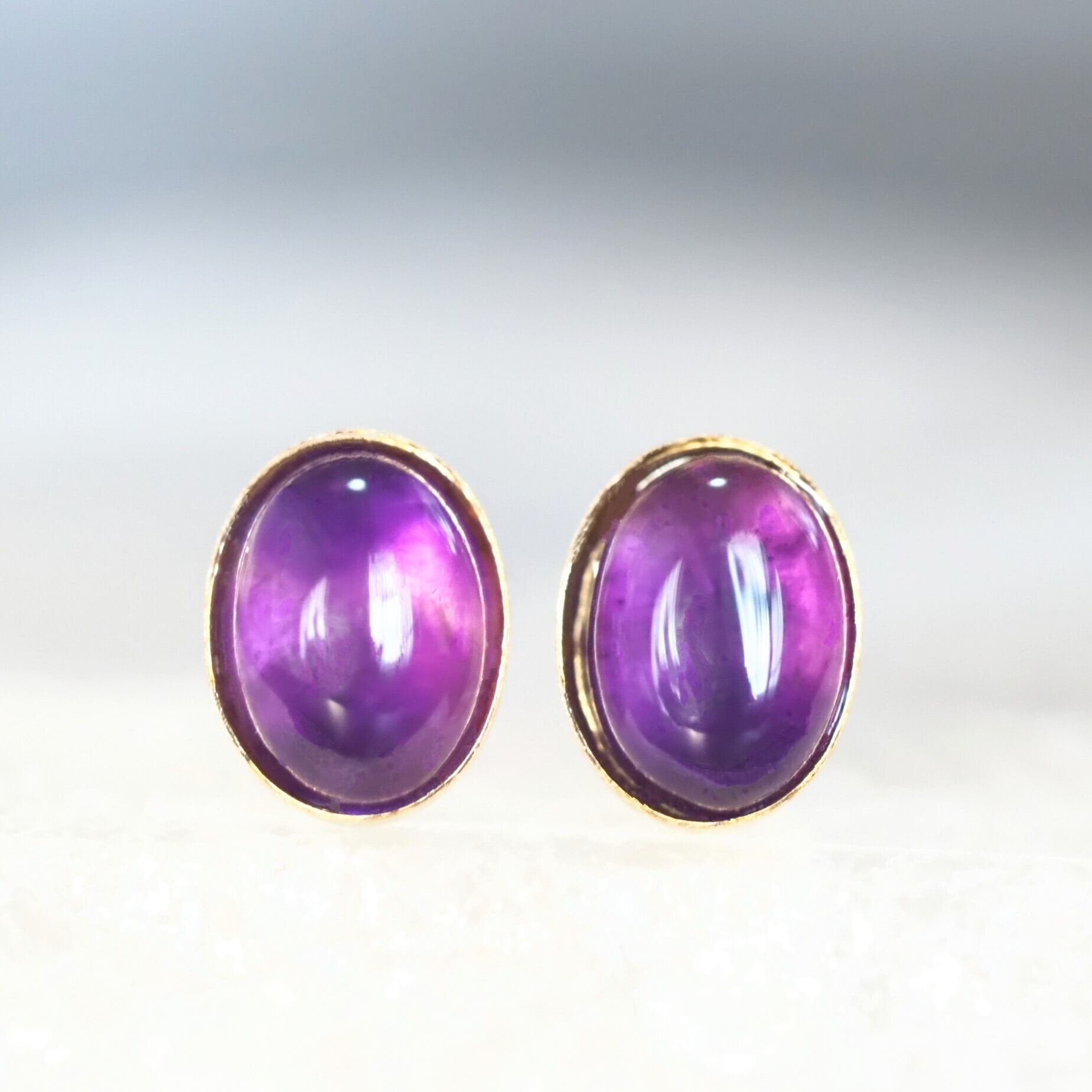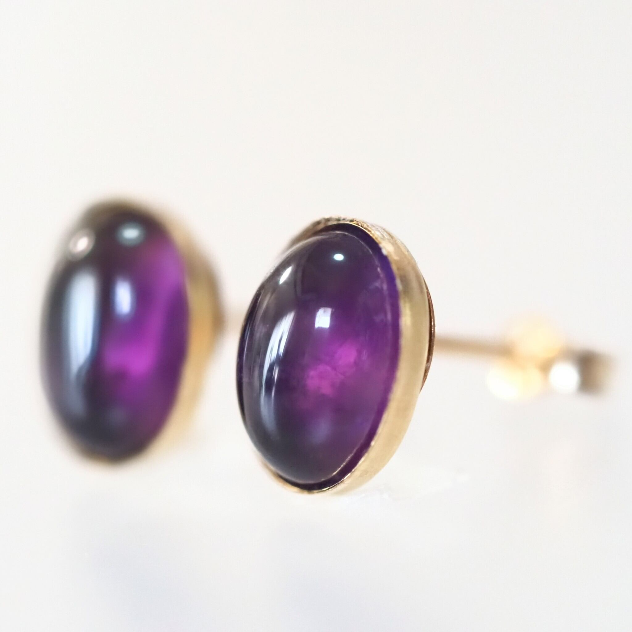 澄んだ紫が魅力のアメジストを、スタッドピアスに仕立てました。