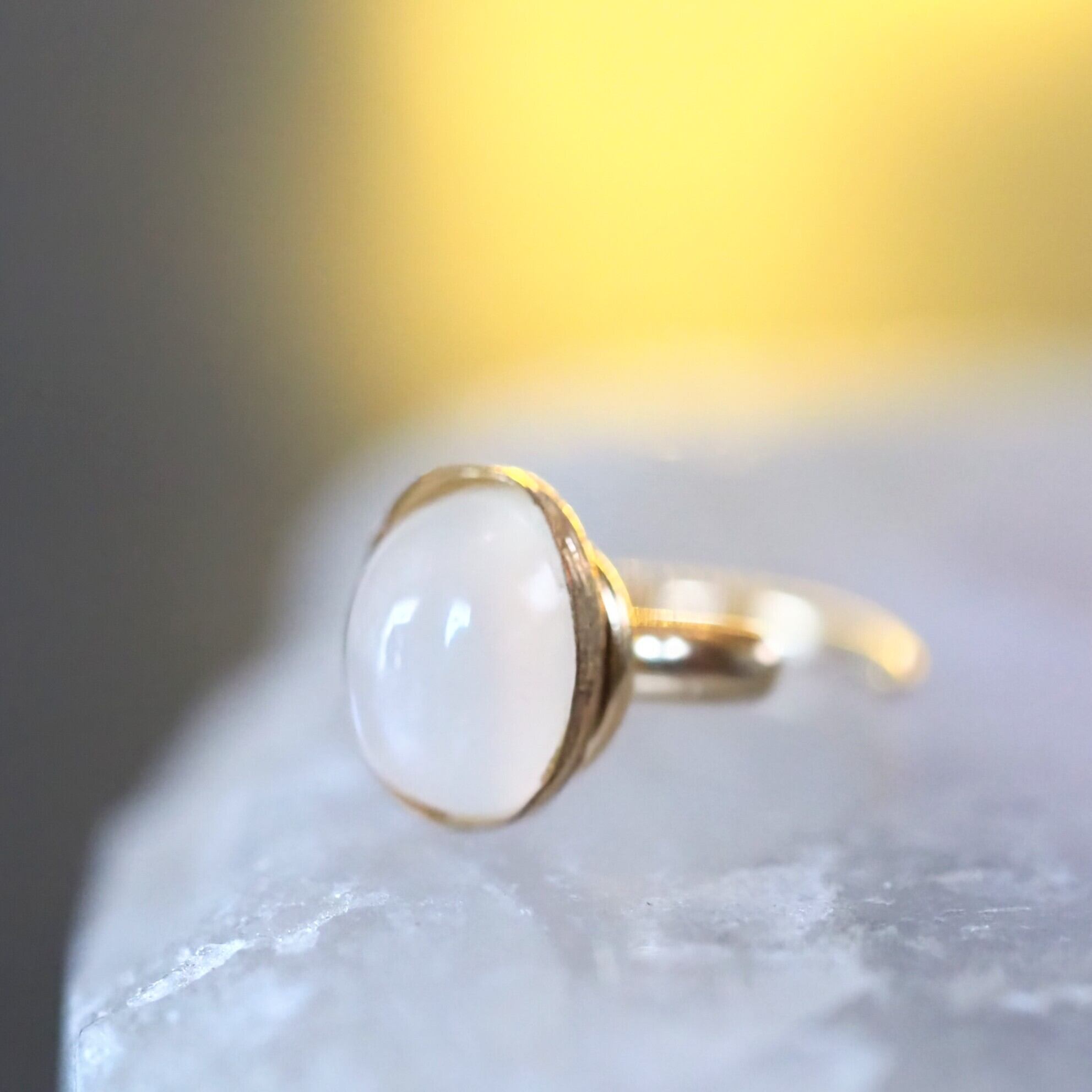 やわらかな光を宿すムーンストーンを、ひと粒イヤーカフに仕立てました。