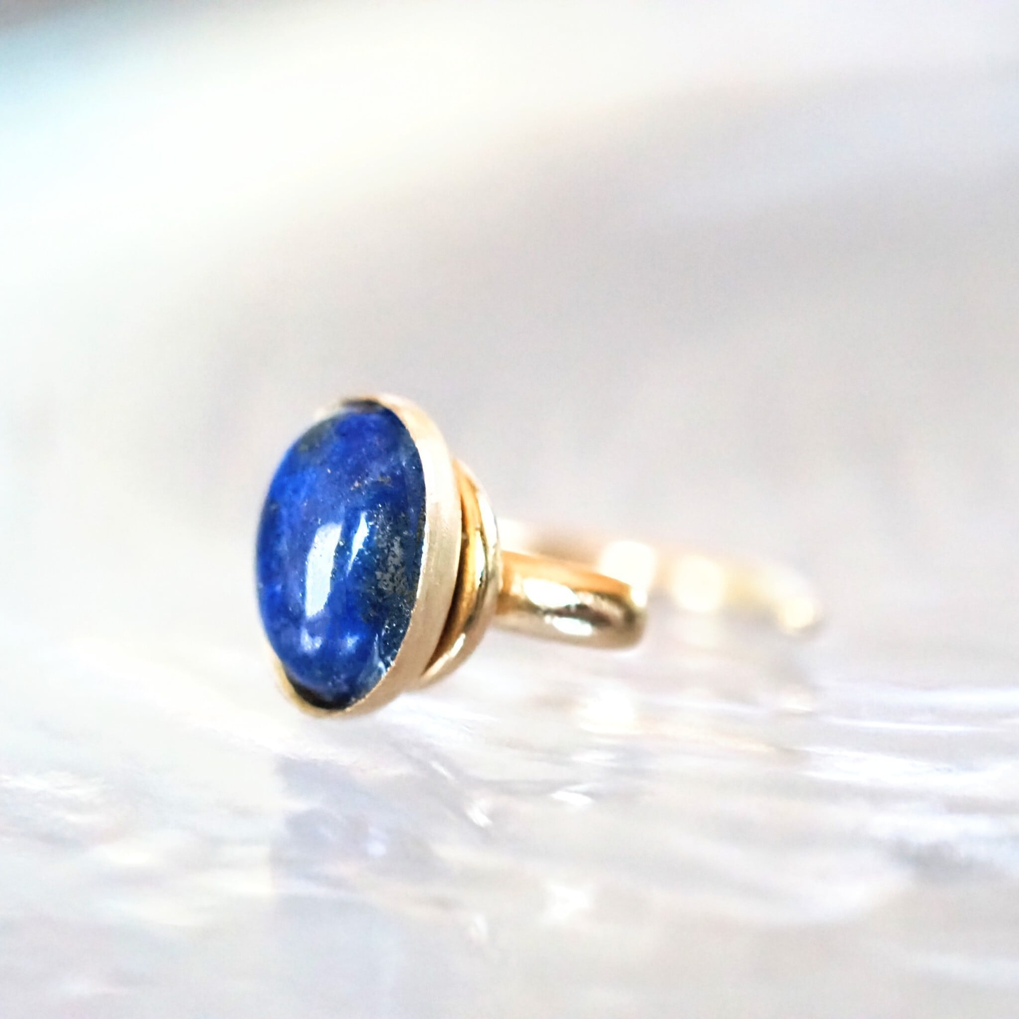 深い青を湛えたラピスラズリを、ひと粒イヤーカフに仕立てました。