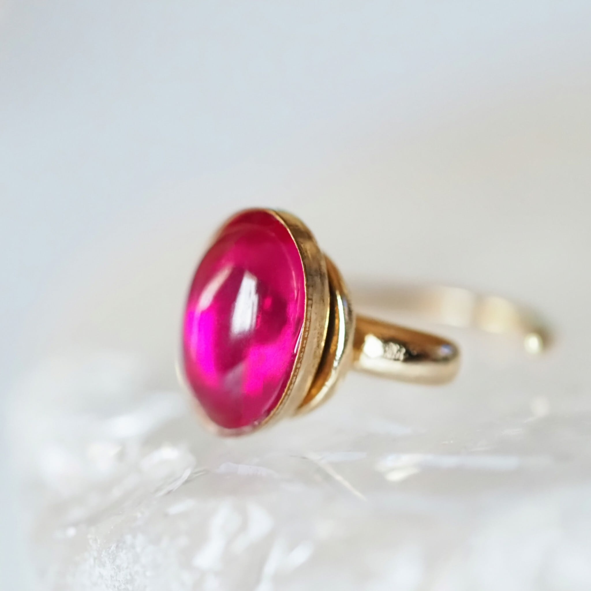 鮮やかで透明感のあるフューシャピンクが魅力のコランダムを、ひと粒イヤーカフに仕立てました。