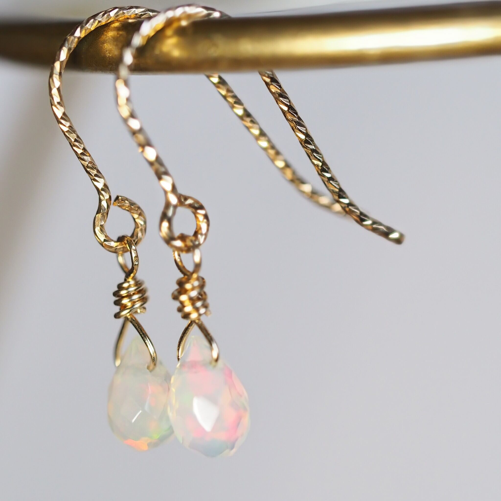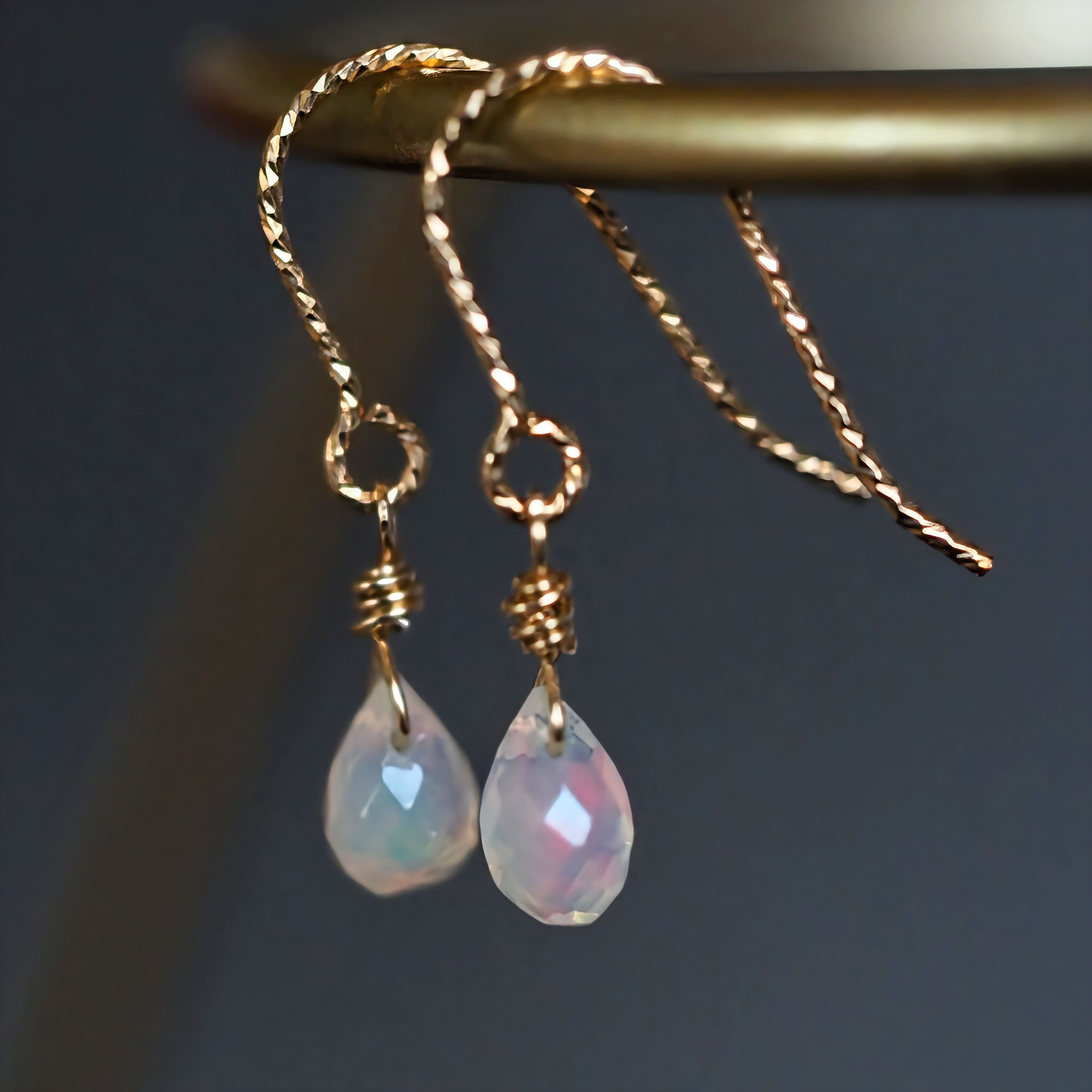 虹色に輝く美しいエチオピアオパールのドロップピアスです。
