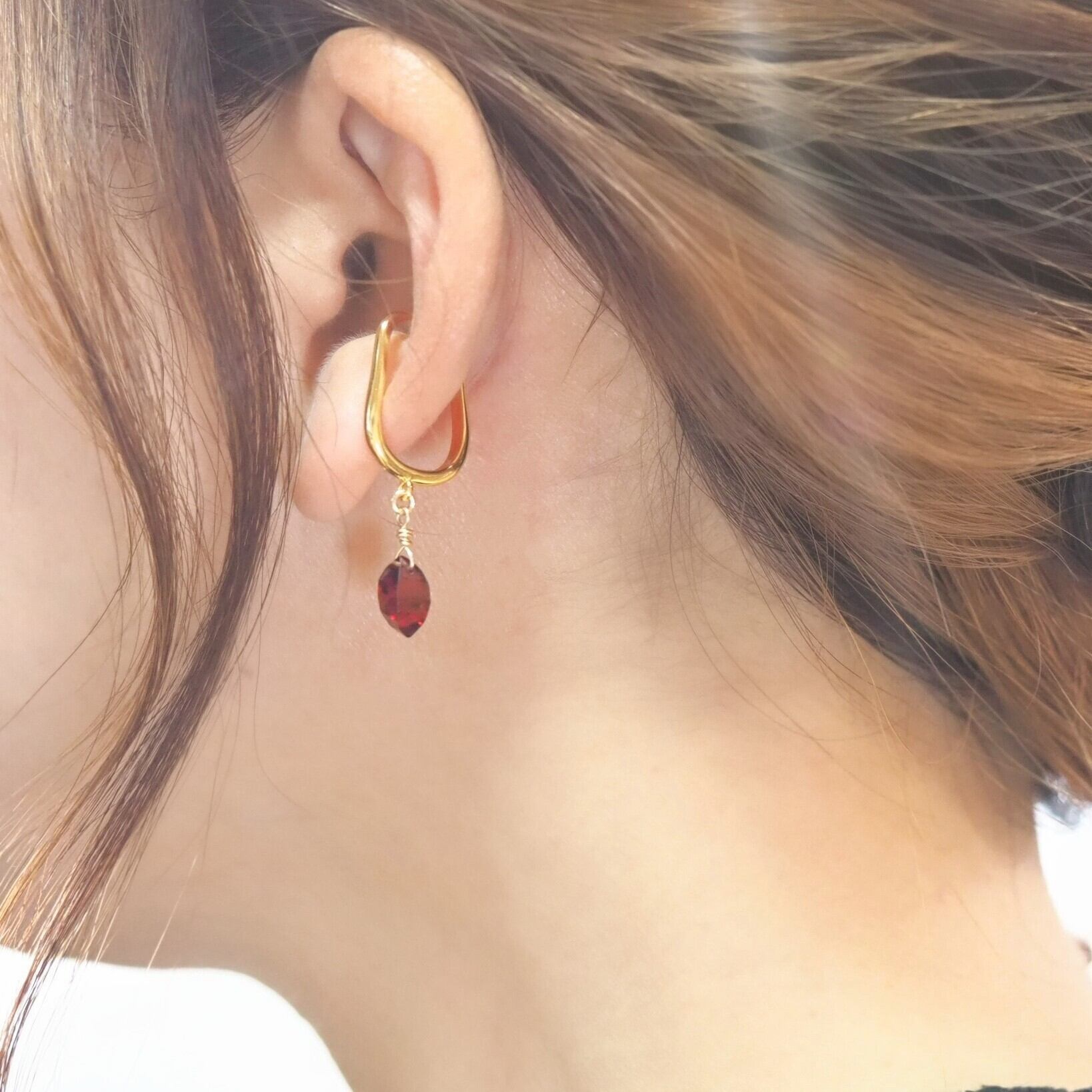 《ガーネットのスクエアドロップイヤーカフ》