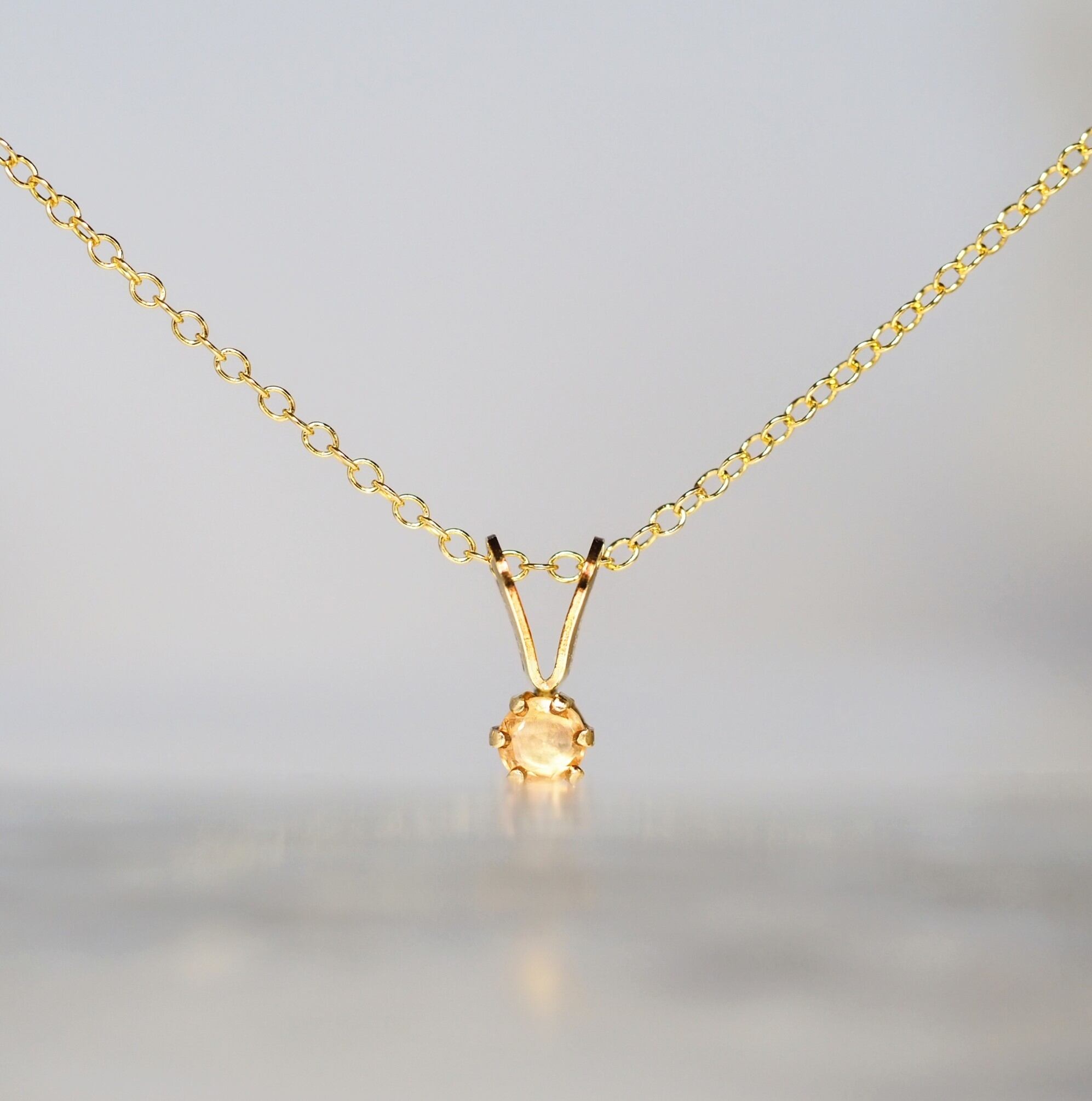 3.0㎜のひと粒天然石を立て爪にセットした、華奢なデザインの誕生石ネックレスです。