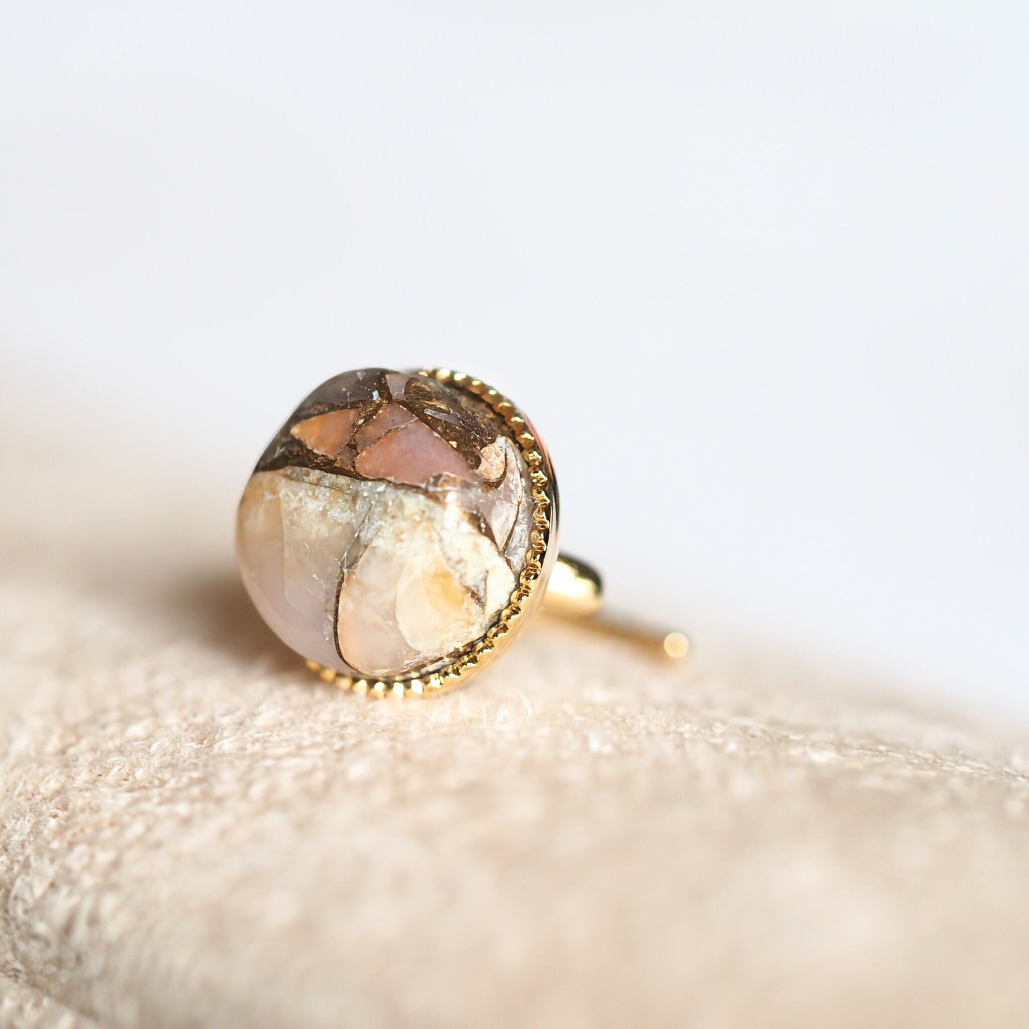 #コッパーピンクオパール#ピンクオパール#イヤーカフ#カボション#天然石#ギフト #結婚式 #ウェディング #カラードレス #パーティー#一粒#丸#ラウンド