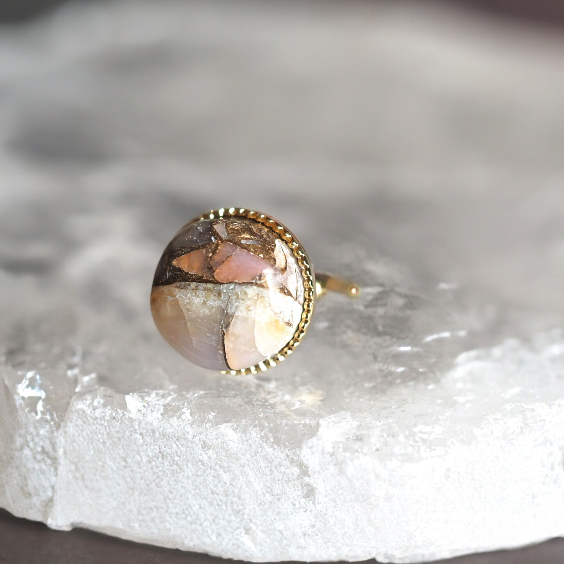 コッパーとペルー産ピンクオパールを圧縮して貼り合わせたストーンです。