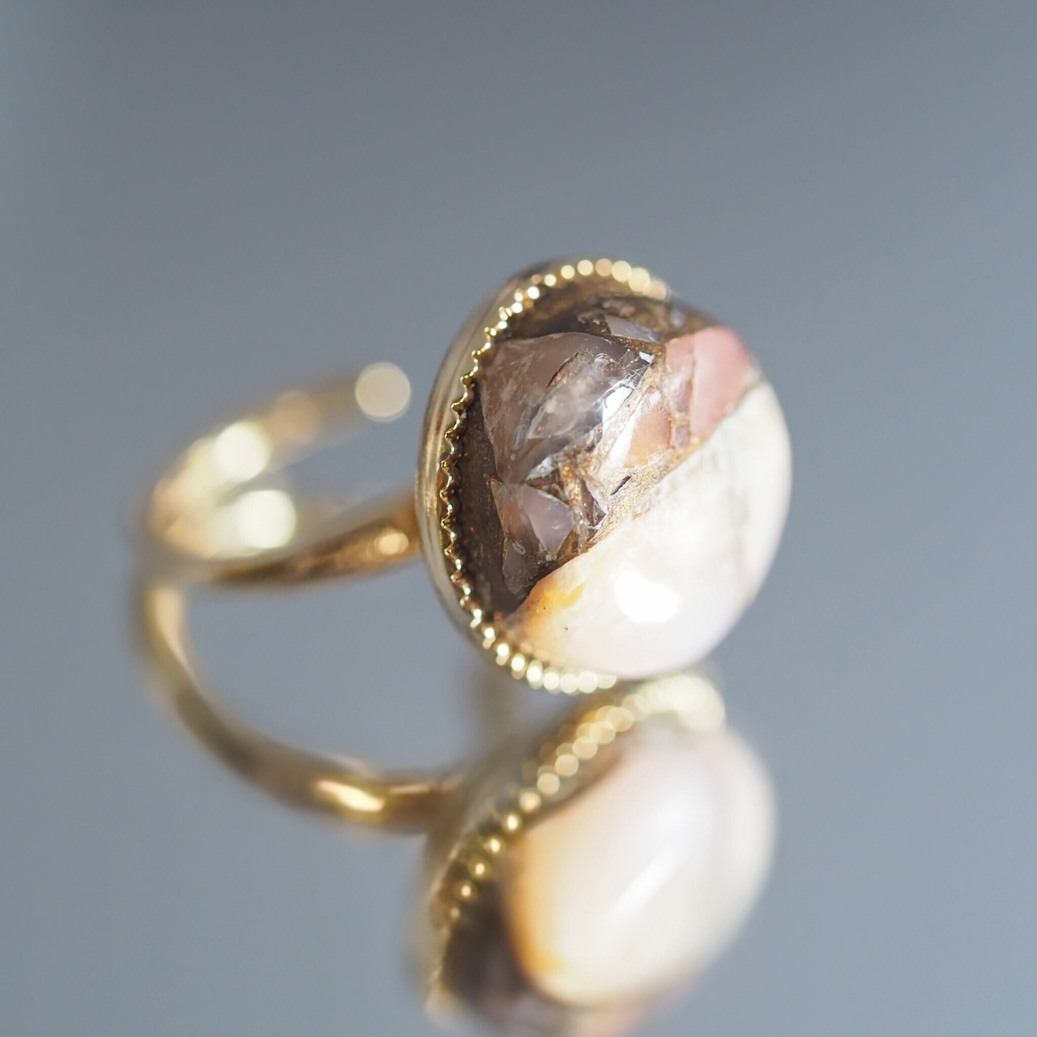 可憐なピンクにコッパーのゴールドの輝きが良く映えます。