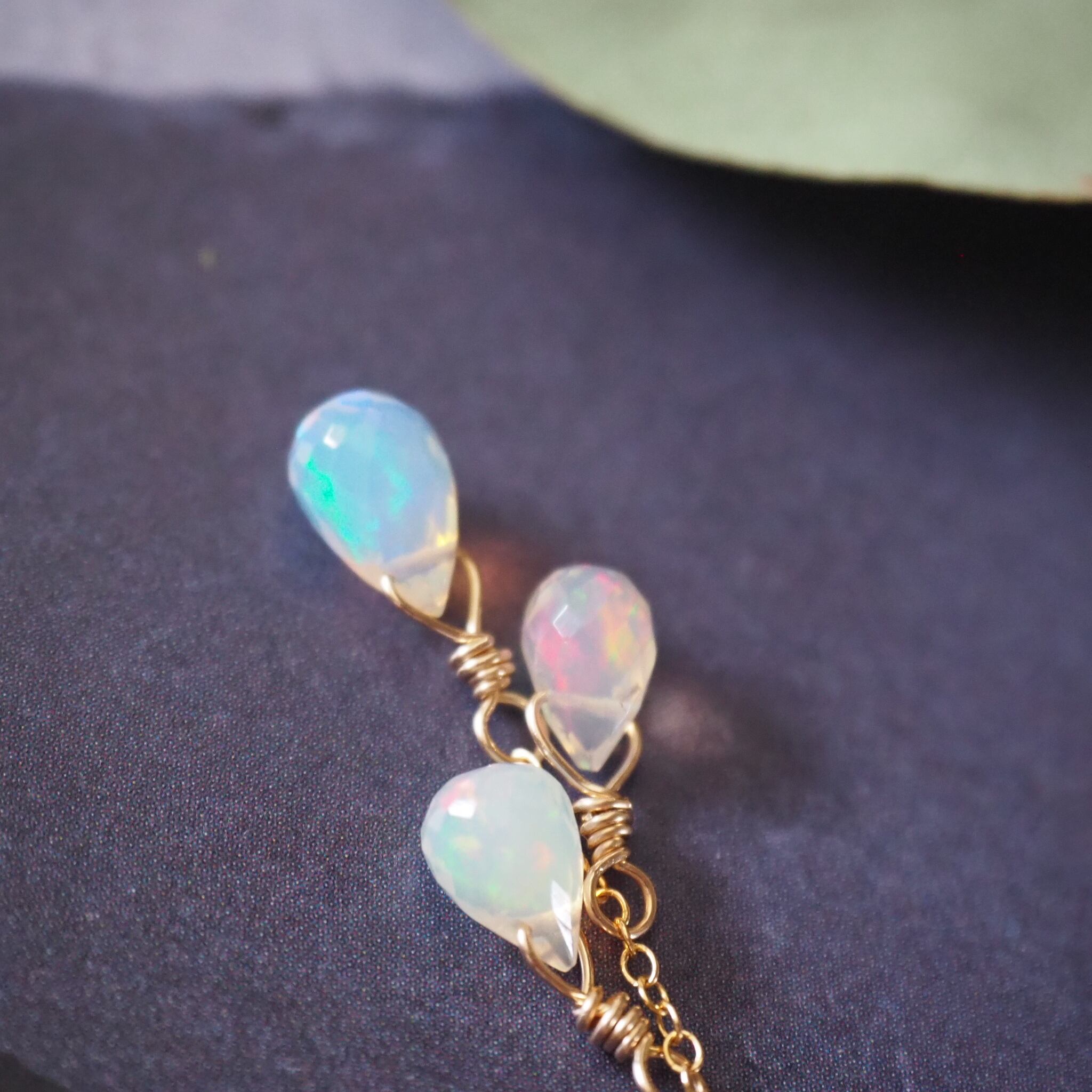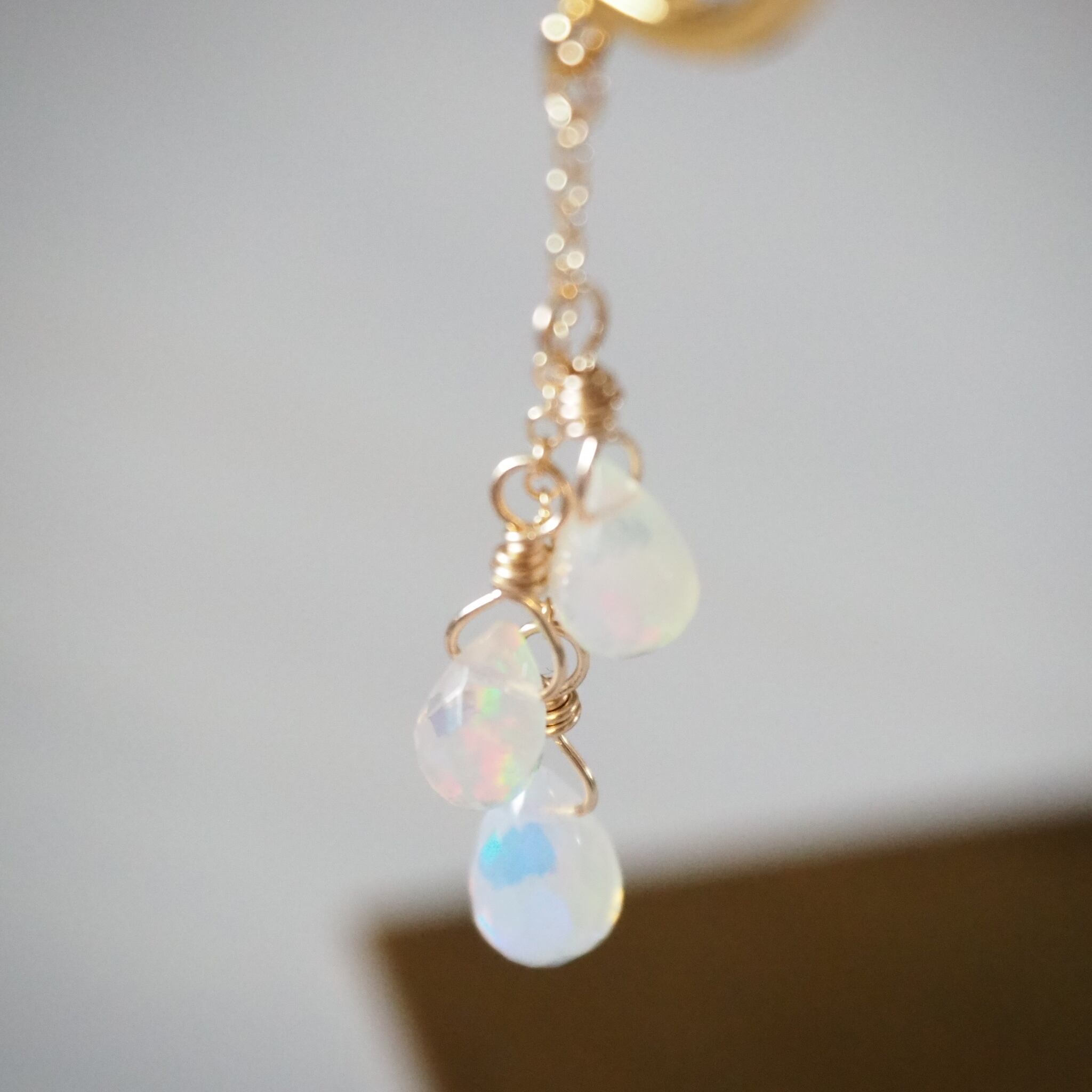エチオピア産の宝石質オパールを3粒、揺れるイヤーカフに仕立てました。