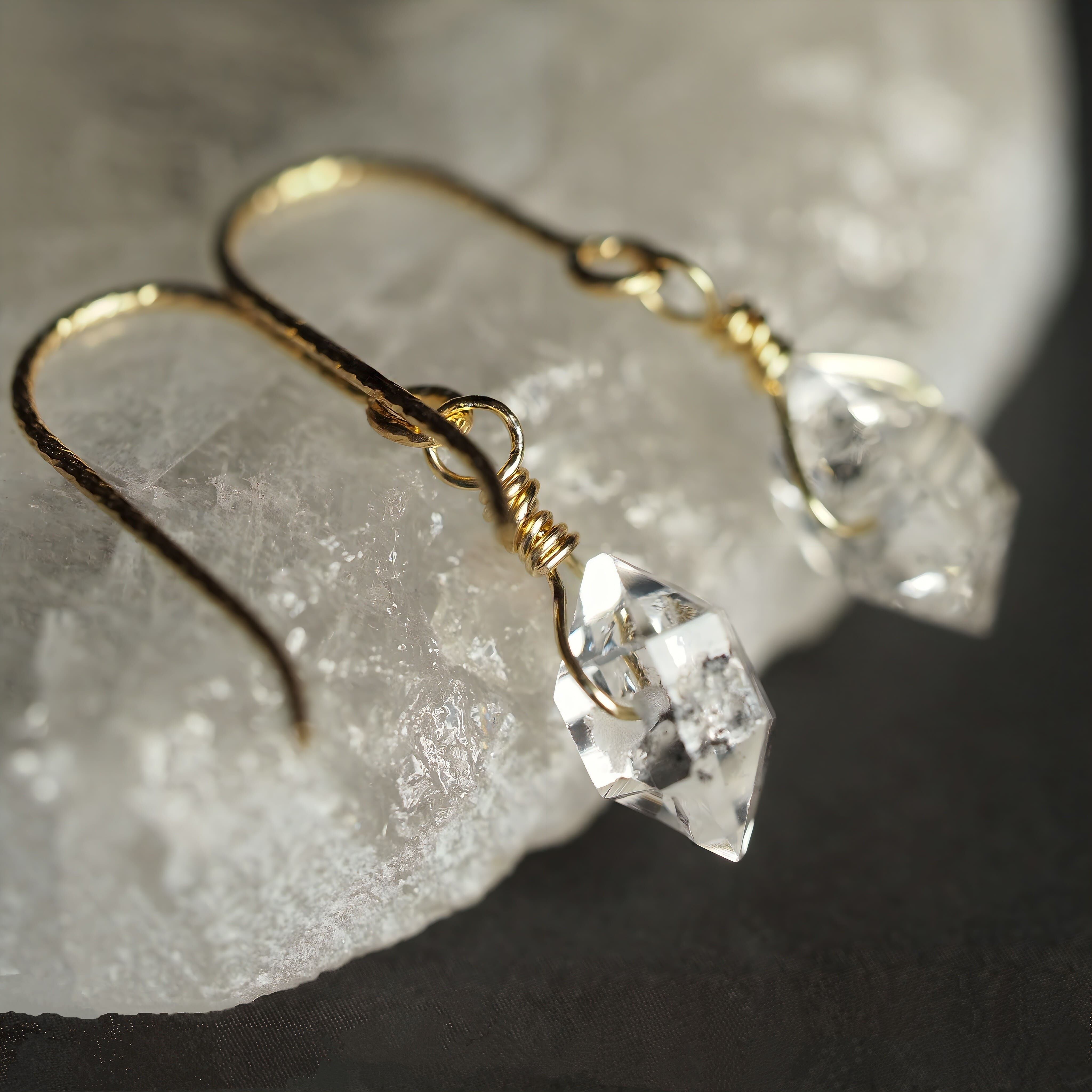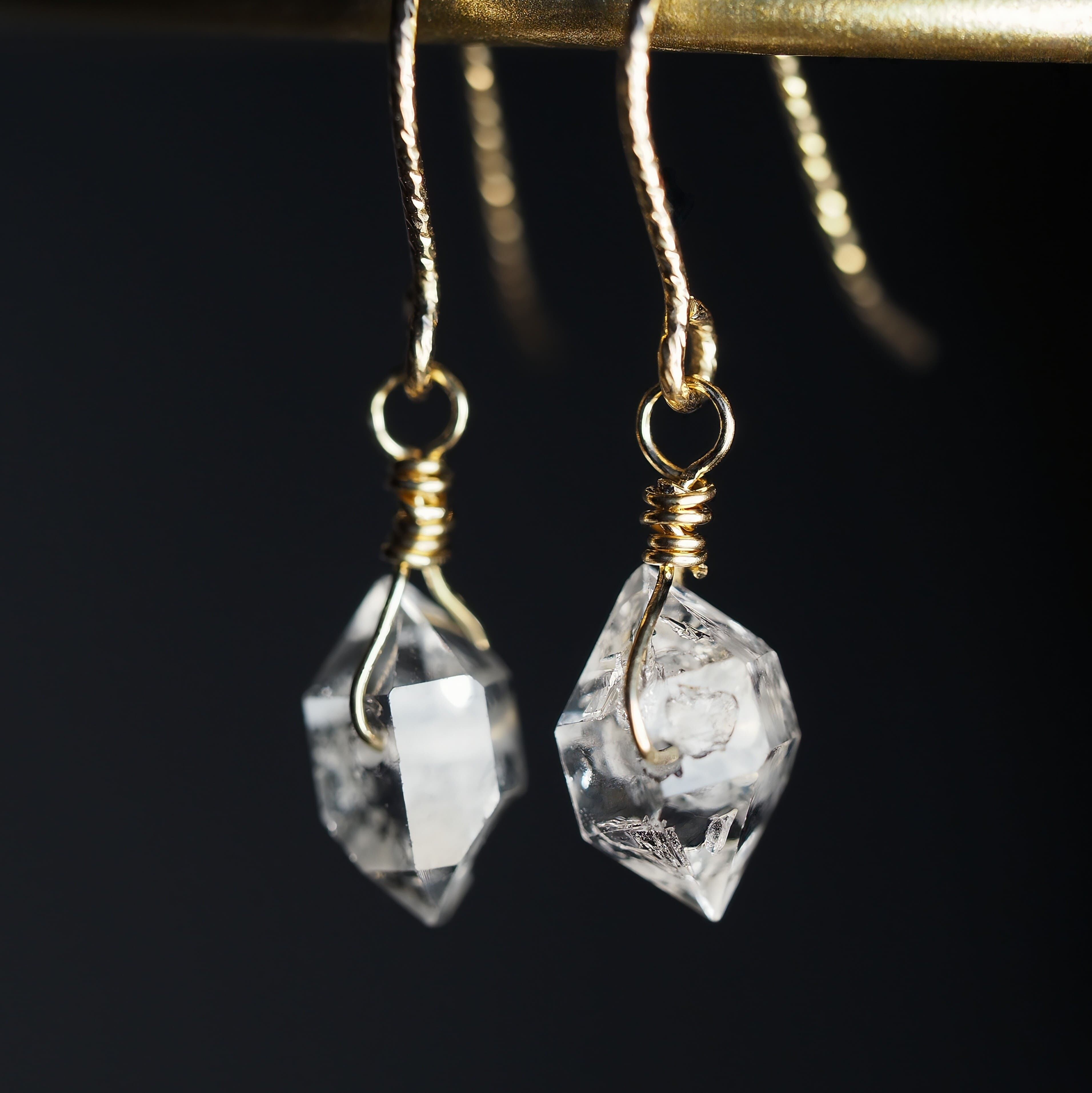 存在感のある大粒のハーキマーダイヤモンドが耳元で美しく輝きます。